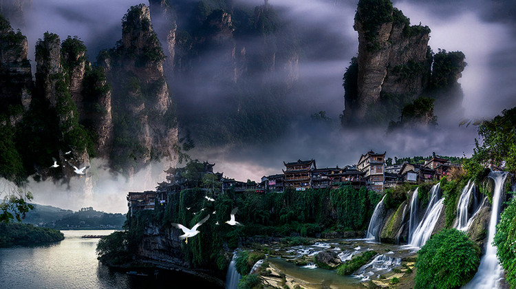 天门山游玩后,乘车前往【挂在瀑布上的千年古镇-芙蓉镇】景区。