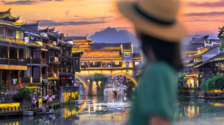 芙蓉镇游览后乘车前往凤凰古城,在凤凰古城乘坐沱江泛舟享两岸风景