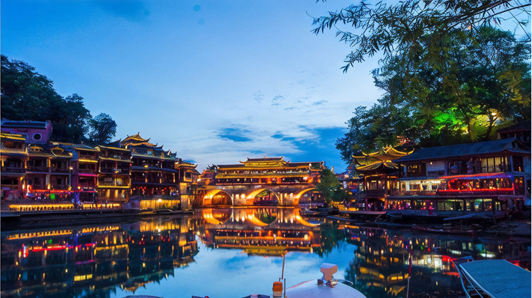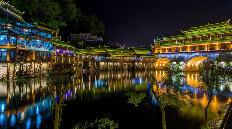 凤凰古城的夜景闻名于天下,团队抵达凤凰古城的时间正好是观赏夜景的时期,办理酒店入住之后,可自行前往古城核心地带欣赏夜景;夜景欣赏地点推荐: